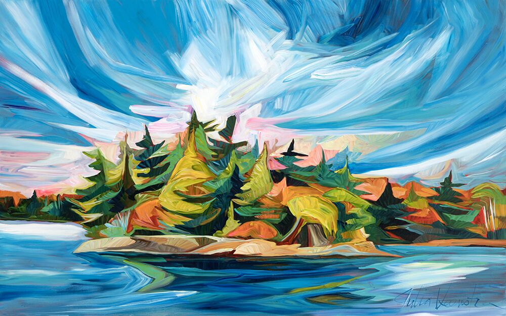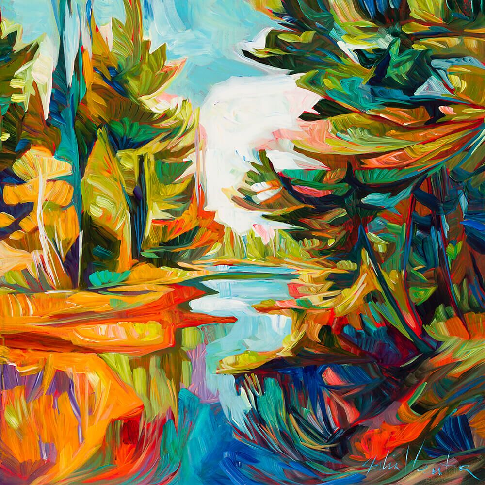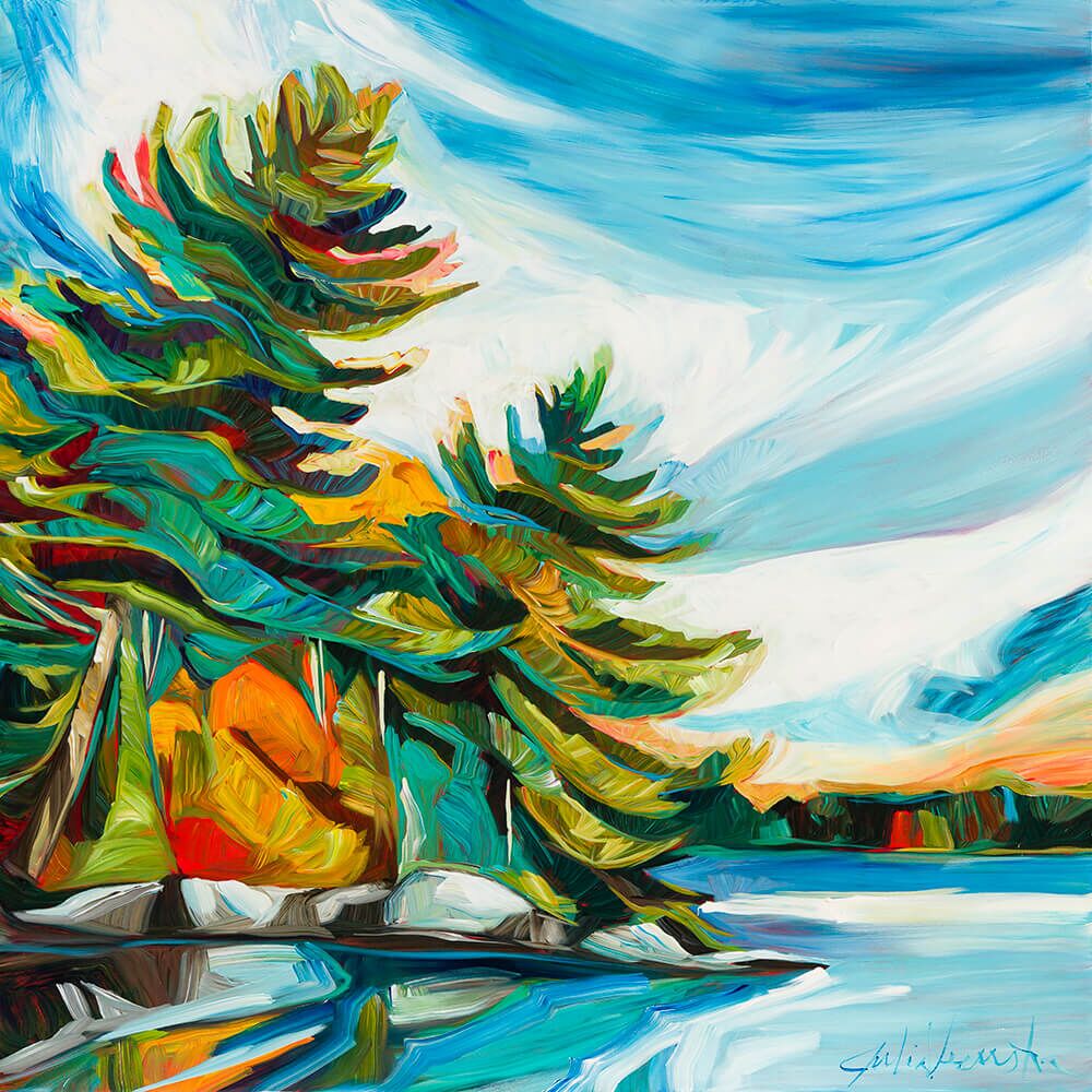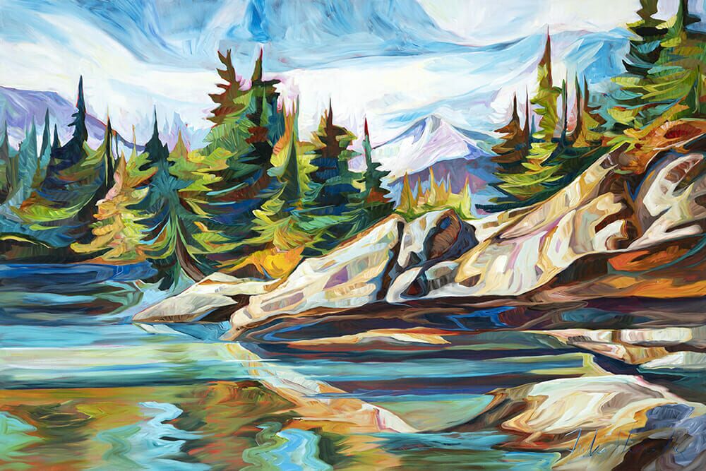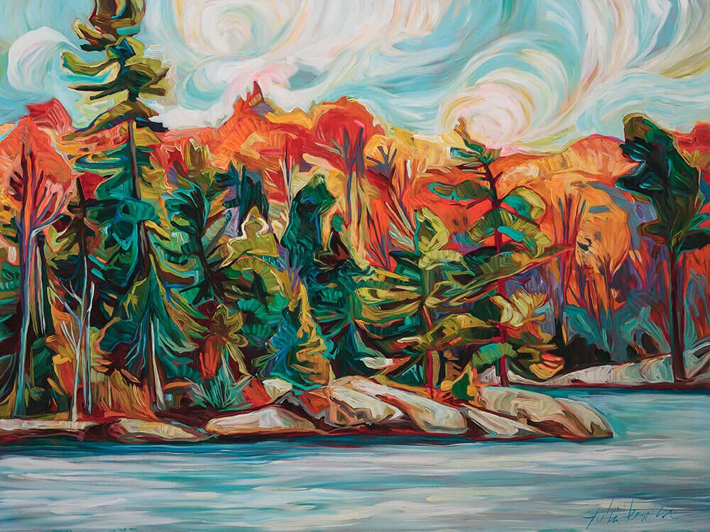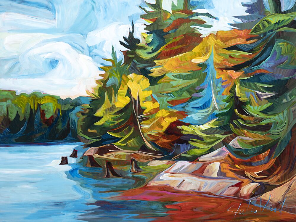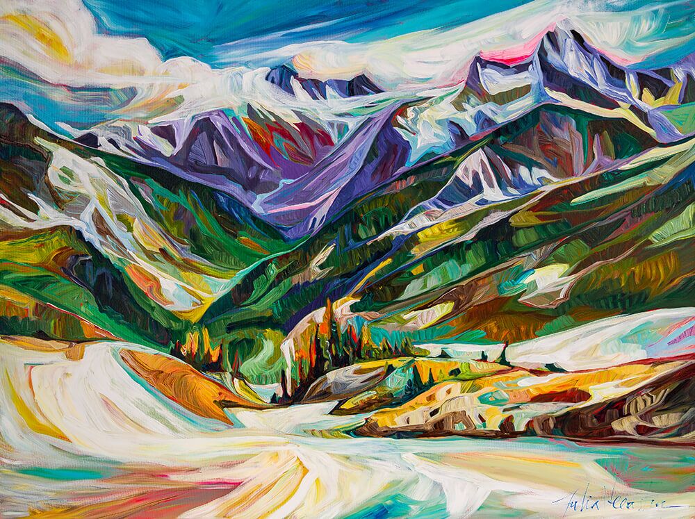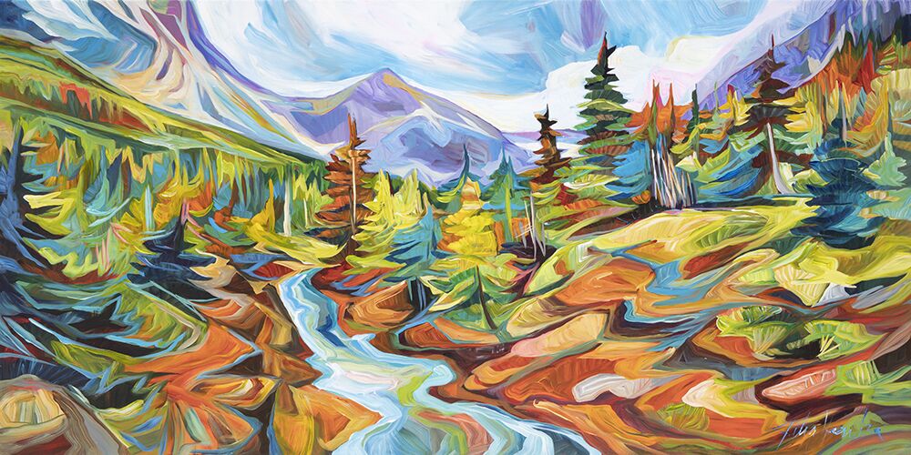 Julia Veenstra is a Canadian artist and entrepreneur known for her use of vibrant color and impressionistic style, incorporating diverse influences from years lived abroad. Her focus is on capturing the landscapes of her native Canada and creating art that evokes a sense of comfort and security.