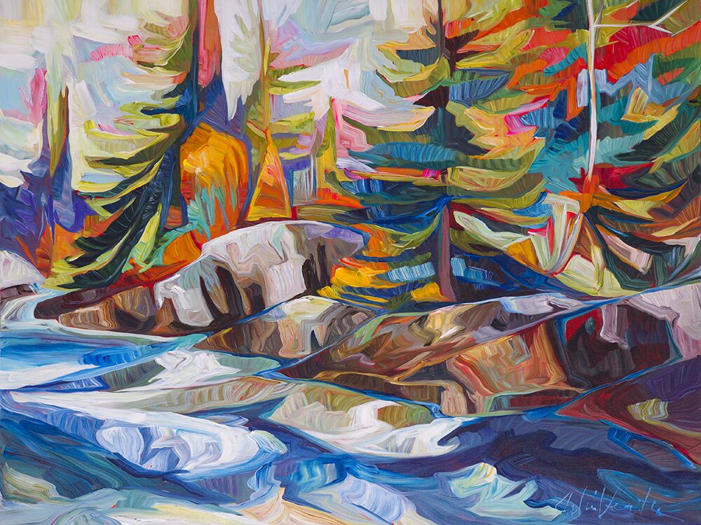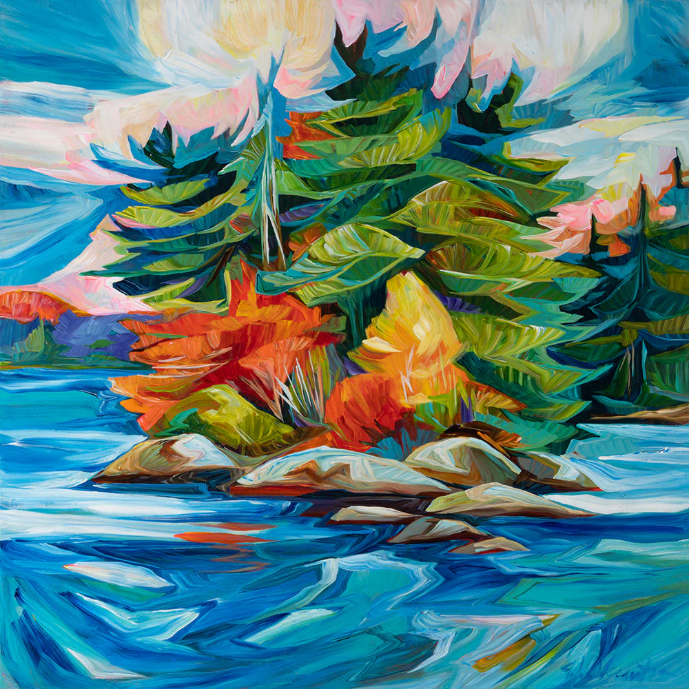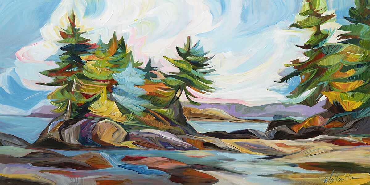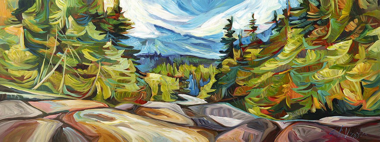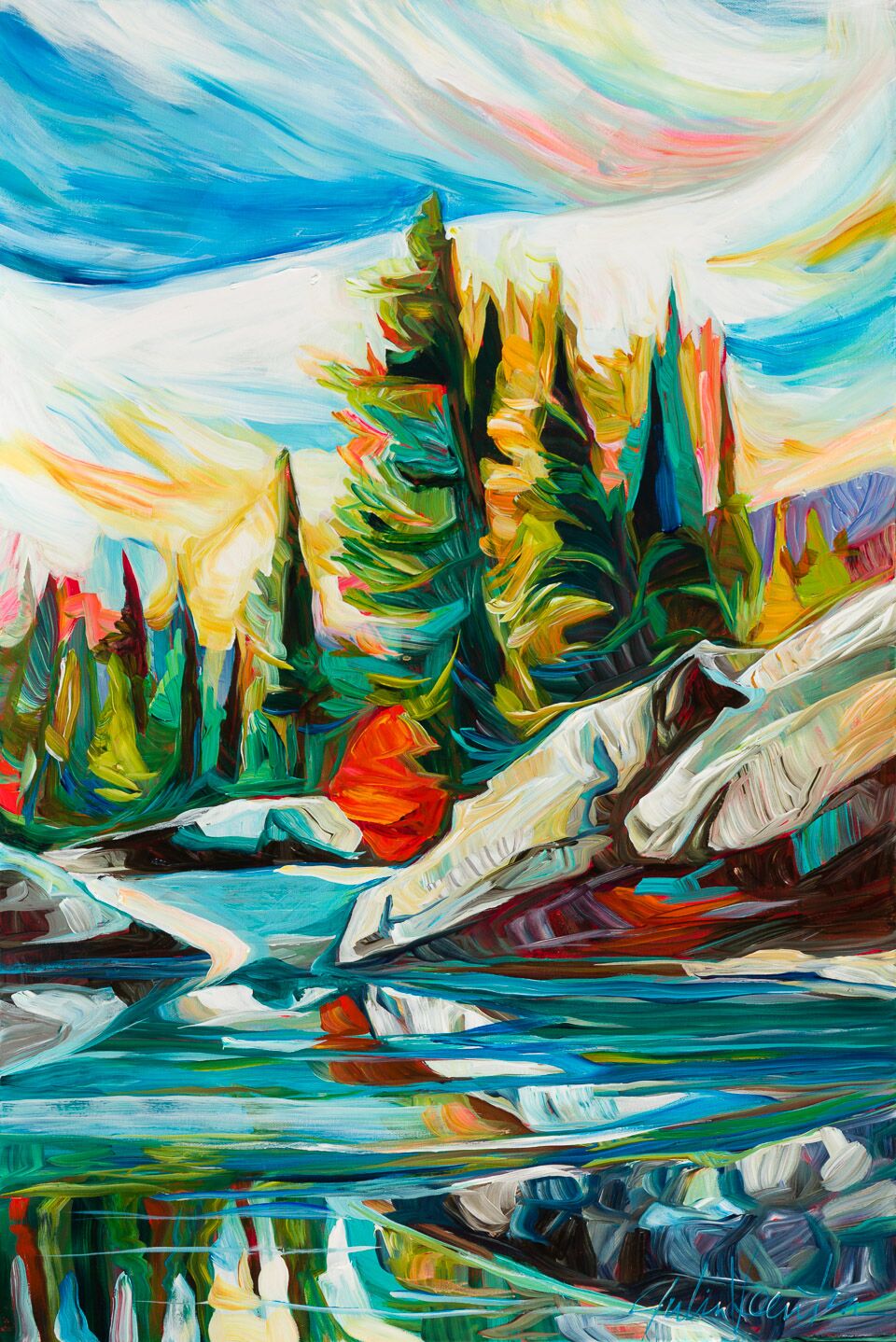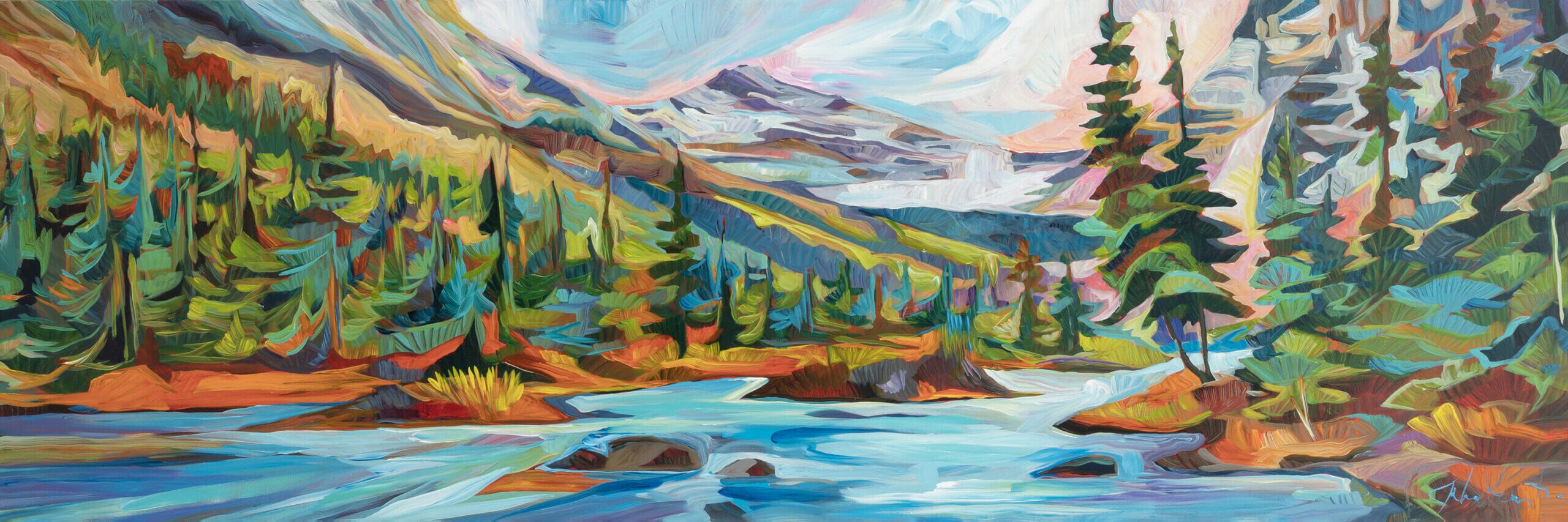 Julia Veenstra is a Canadian artist and entrepreneur known for her use of vibrant color and impressionistic style, incorporating diverse influences from years lived abroad. Her focus is on capturing the landscapes of her native Canada and creating art that evokes a sense of comfort and security.