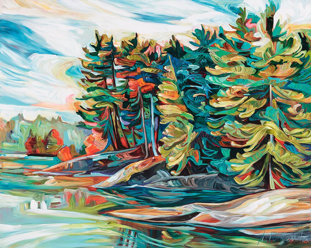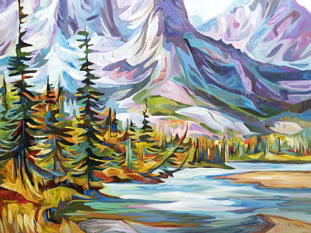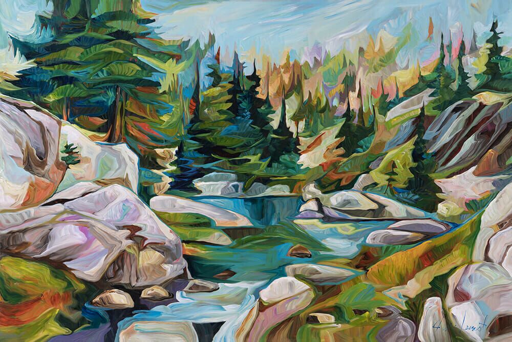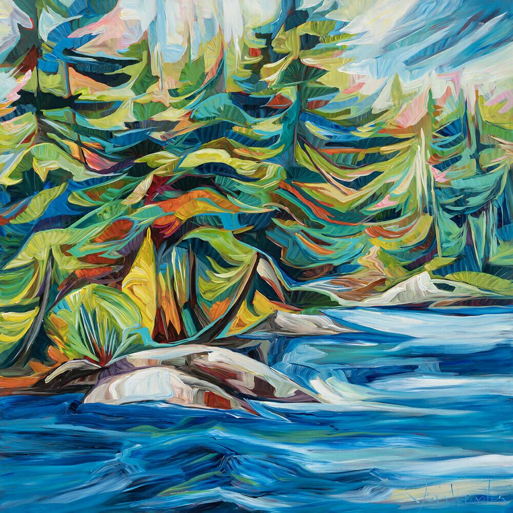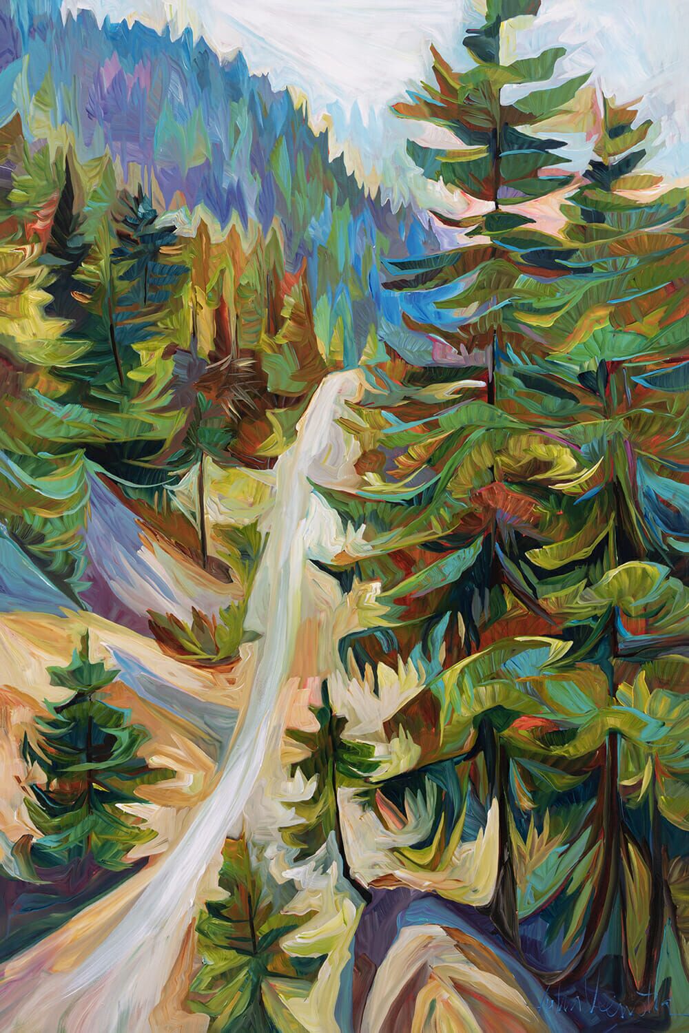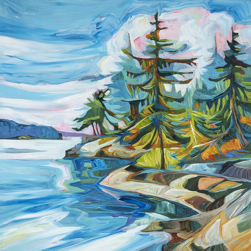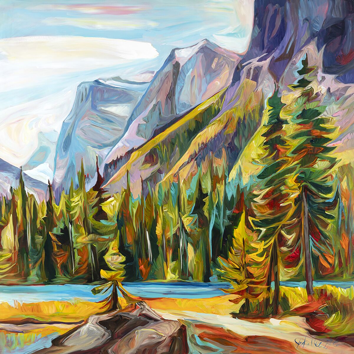 Julia Veenstra is a Canadian artist and entrepreneur known for her use of vibrant color and impressionistic style, incorporating diverse influences from years lived abroad. Her focus is on capturing the landscapes of her native Canada and creating art that evokes a sense of comfort and security.