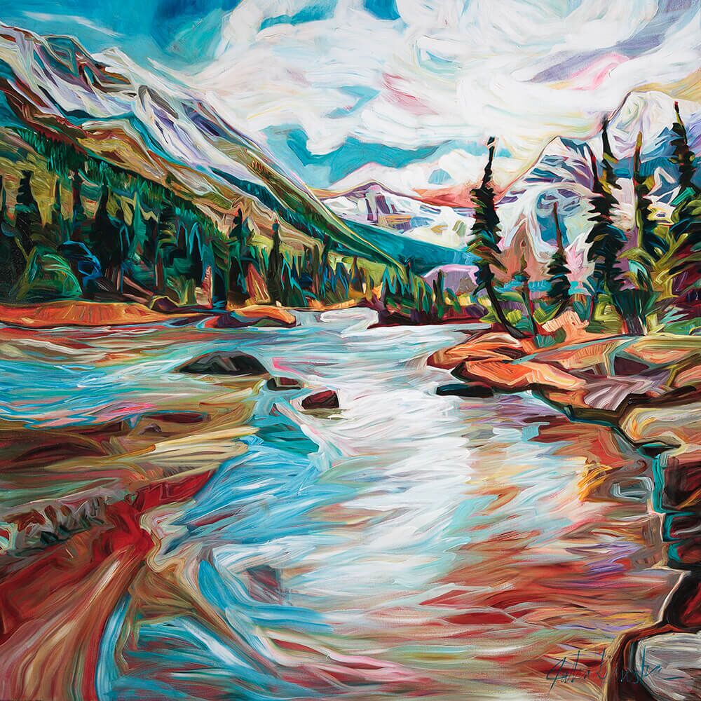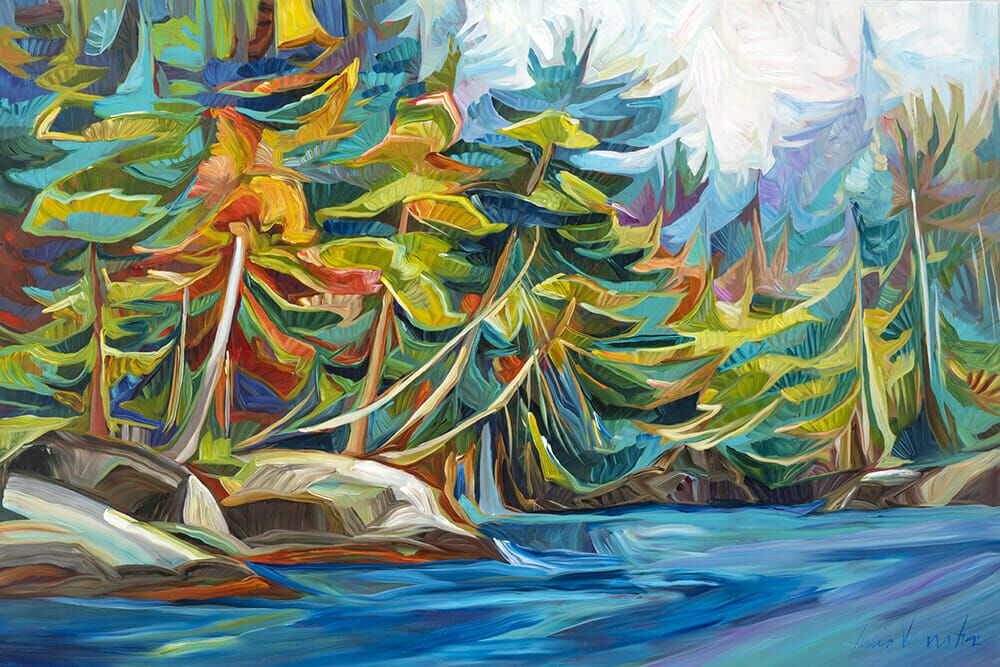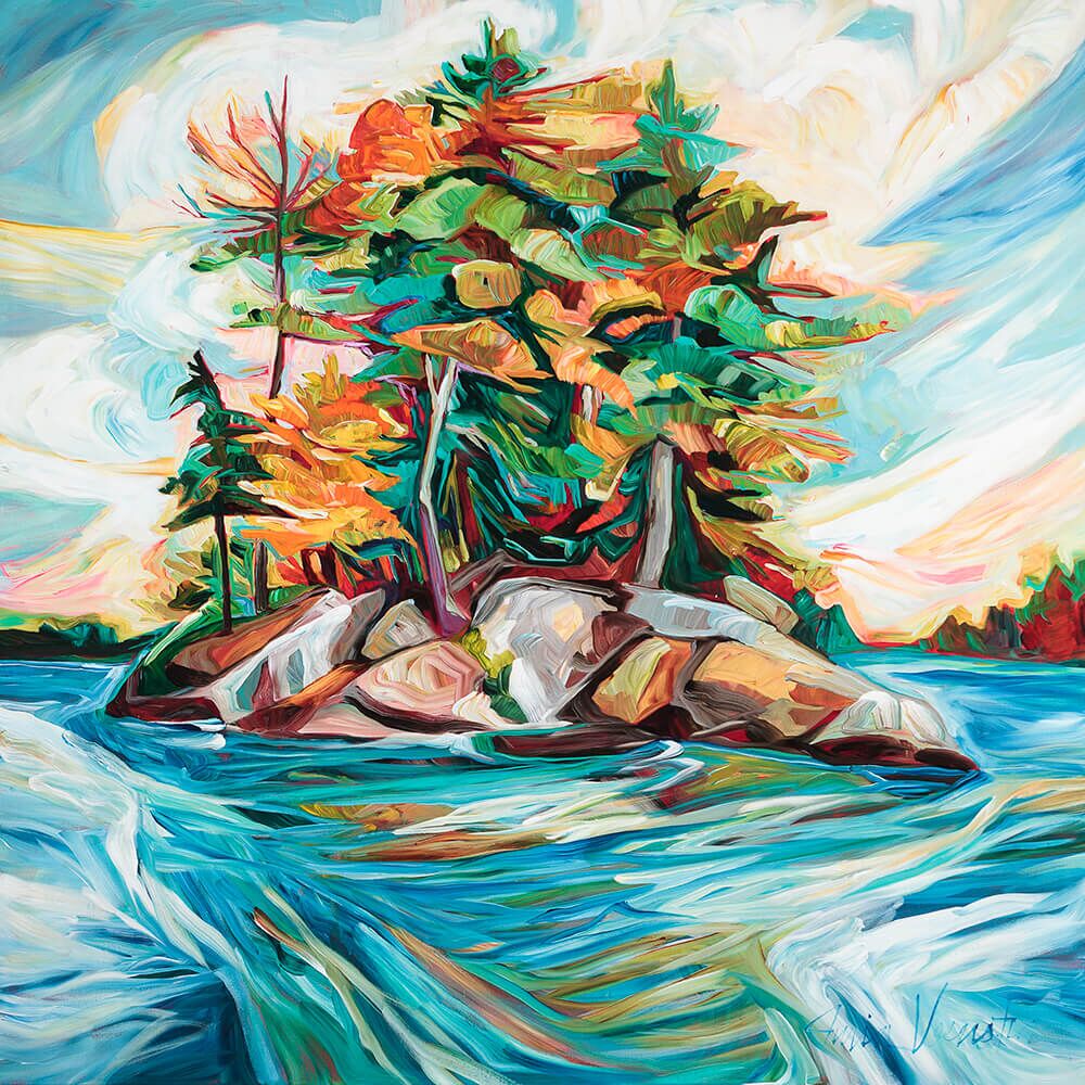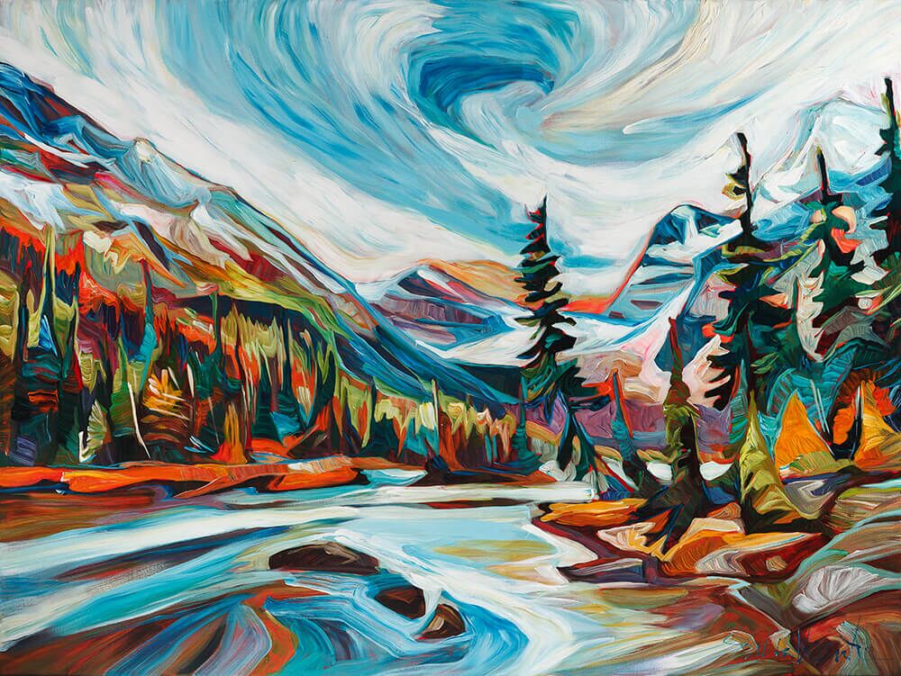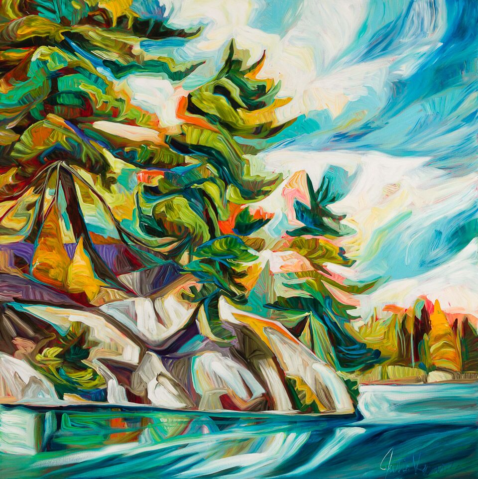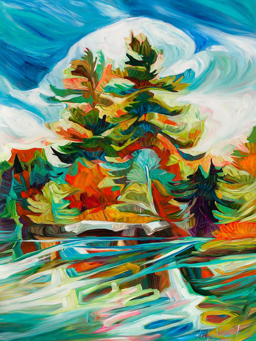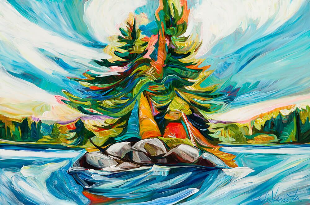Julia Veenstra is a Canadian artist and entrepreneur known for her use of vibrant color and impressionistic style, incorporating diverse influences from years lived abroad. Her focus is on capturing the landscapes of her native Canada and creating art that evokes a sense of comfort and security.