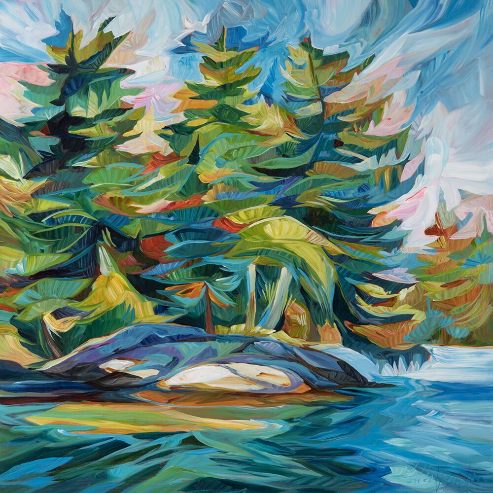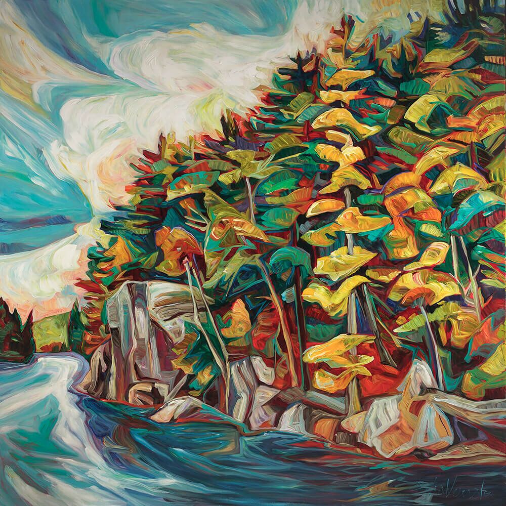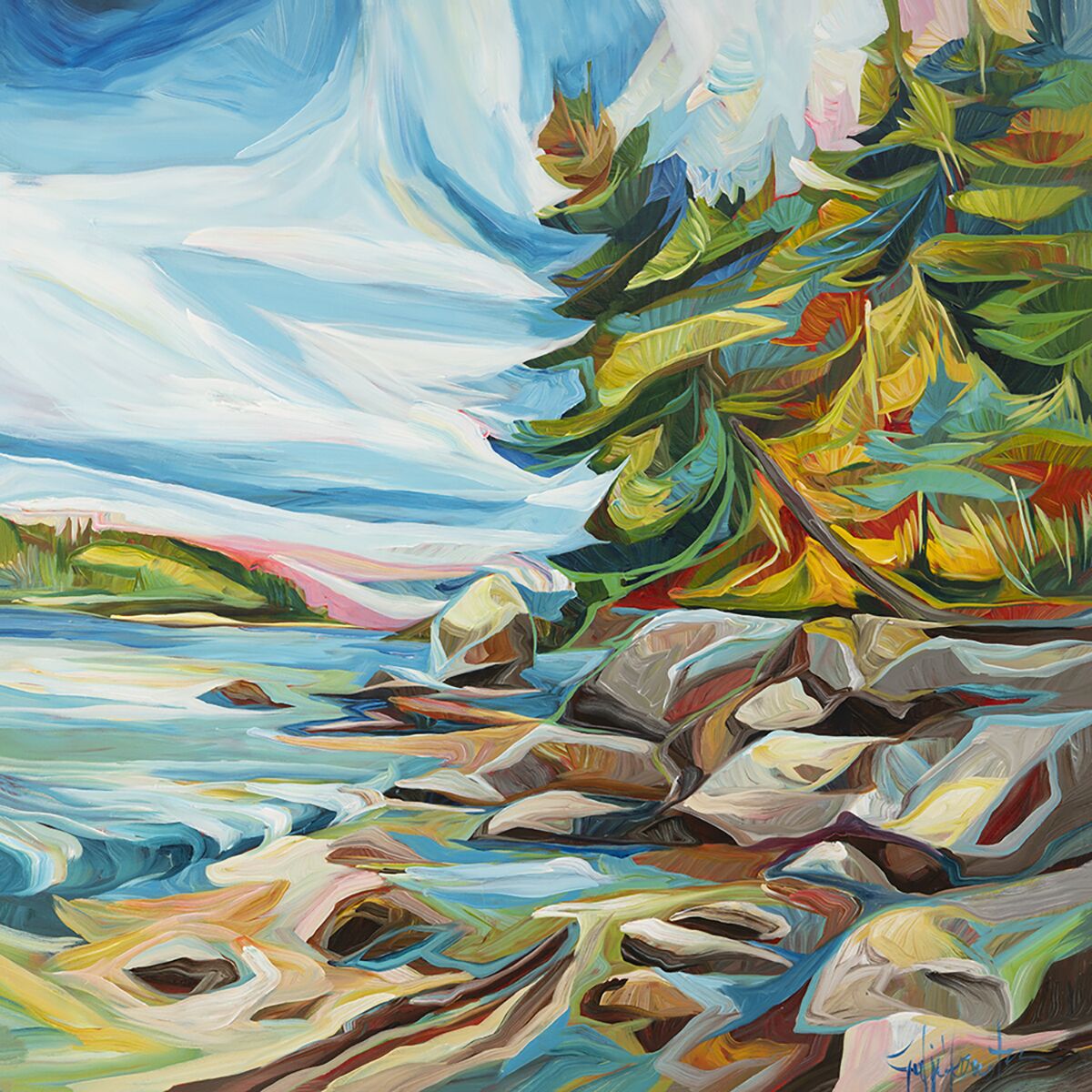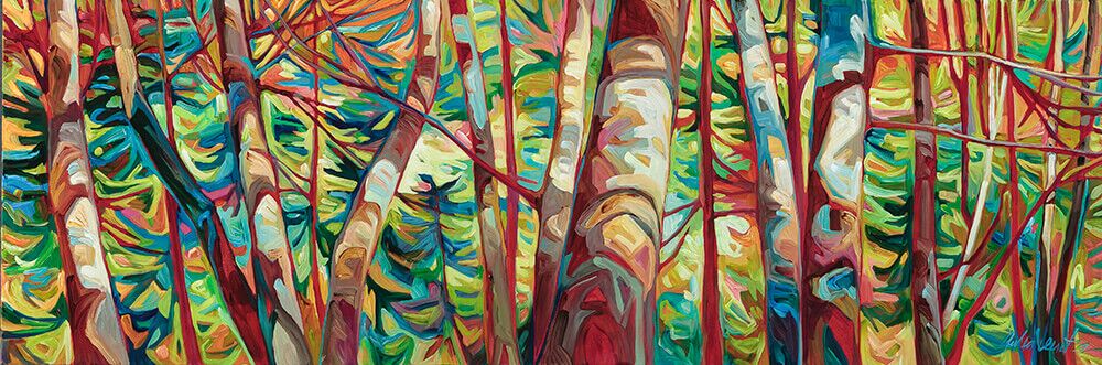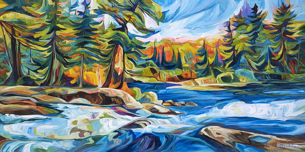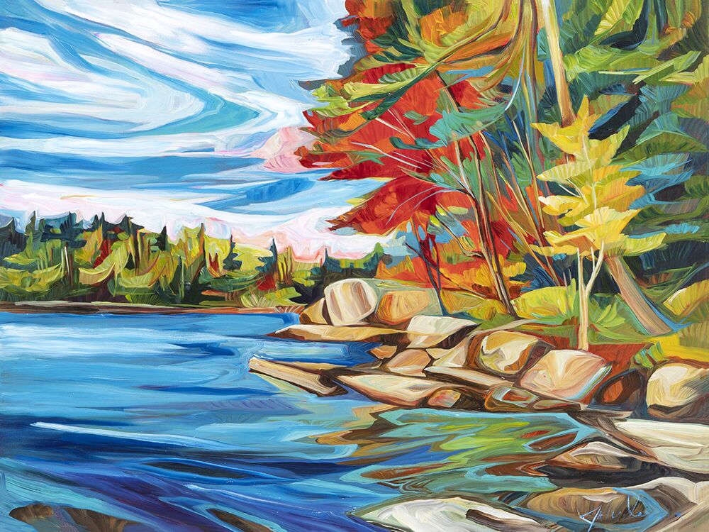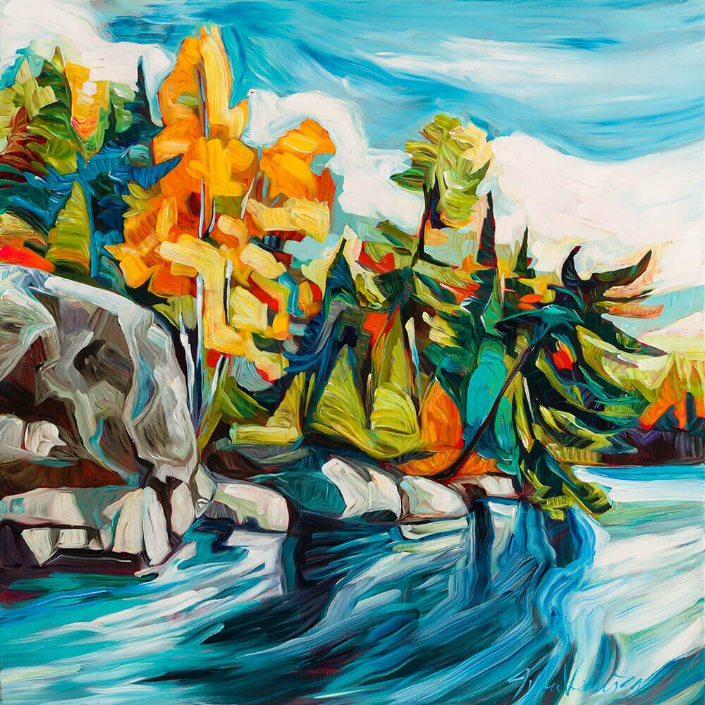 Julia Veenstra is a Canadian artist and entrepreneur known for her use of vibrant color and impressionistic style, incorporating diverse influences from years lived abroad. Her focus is on capturing the landscapes of her native Canada and creating art that evokes a sense of comfort and security.