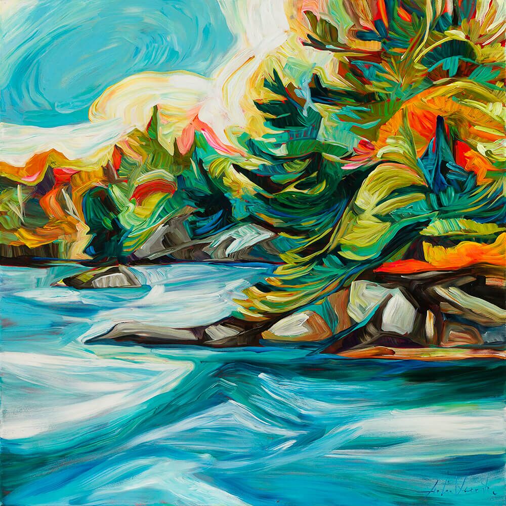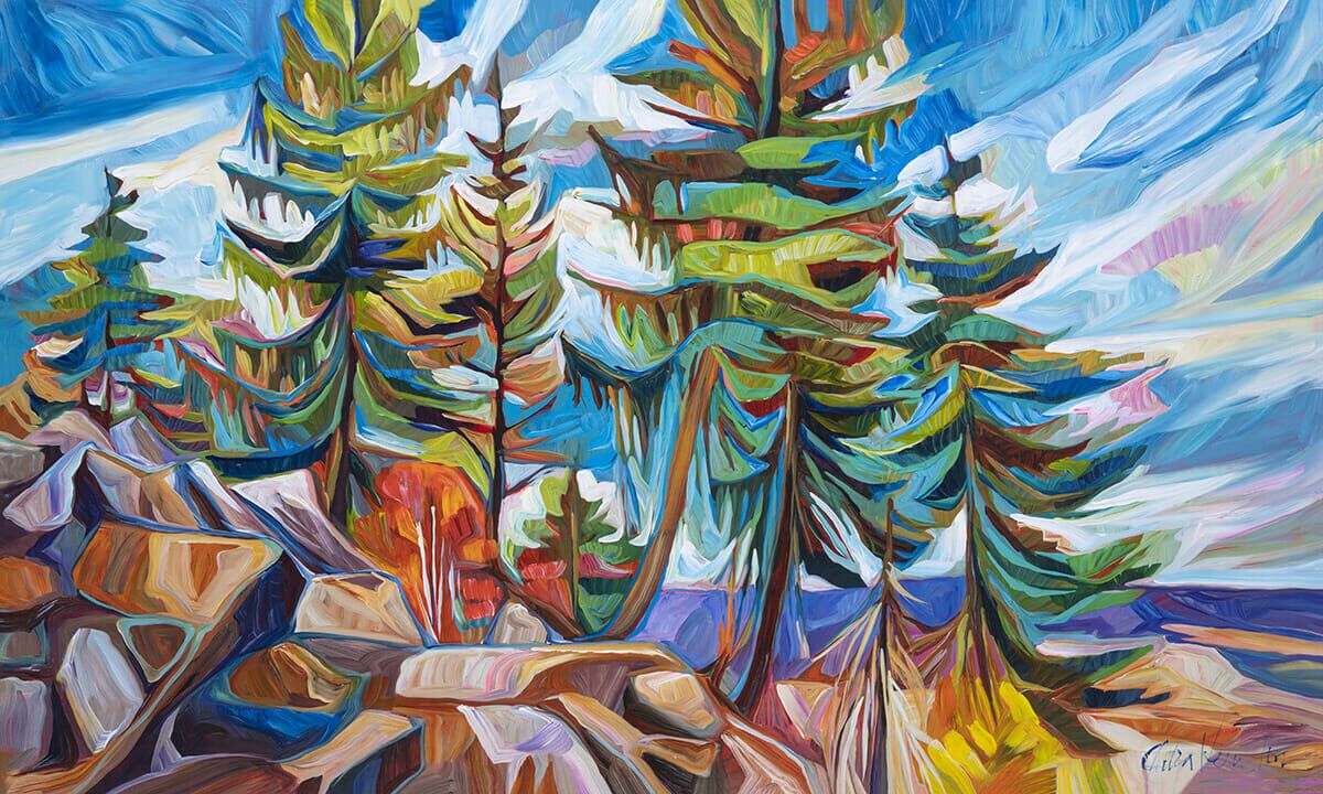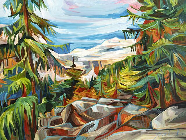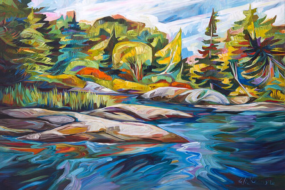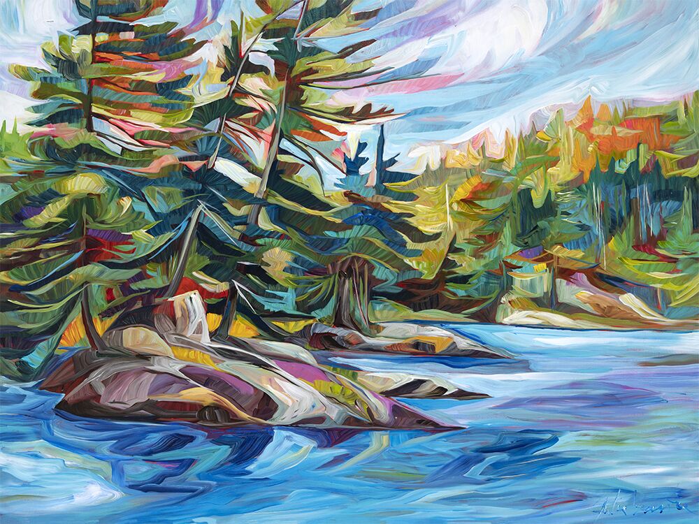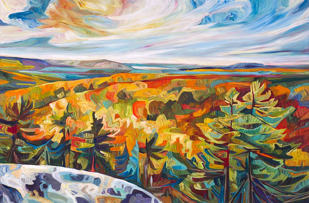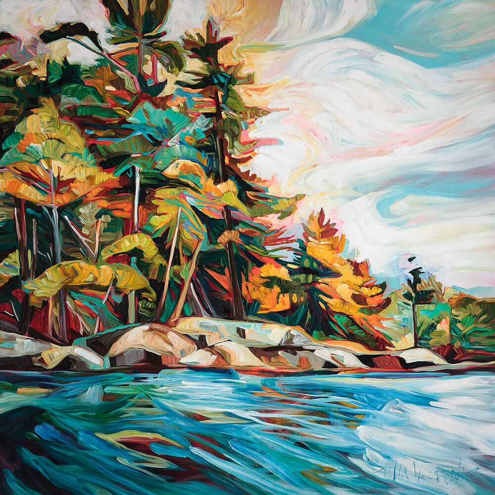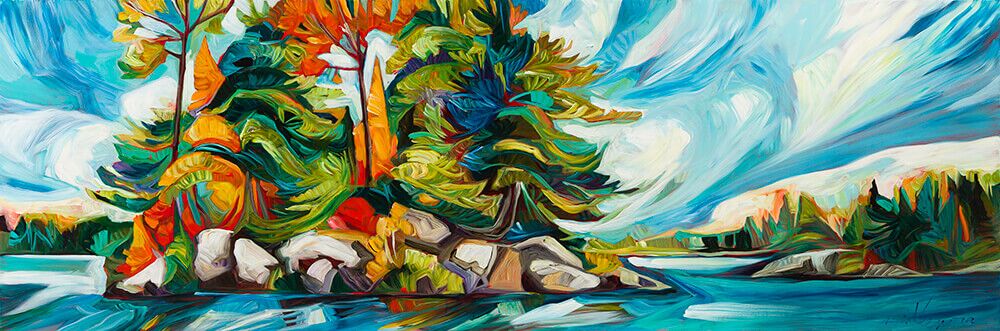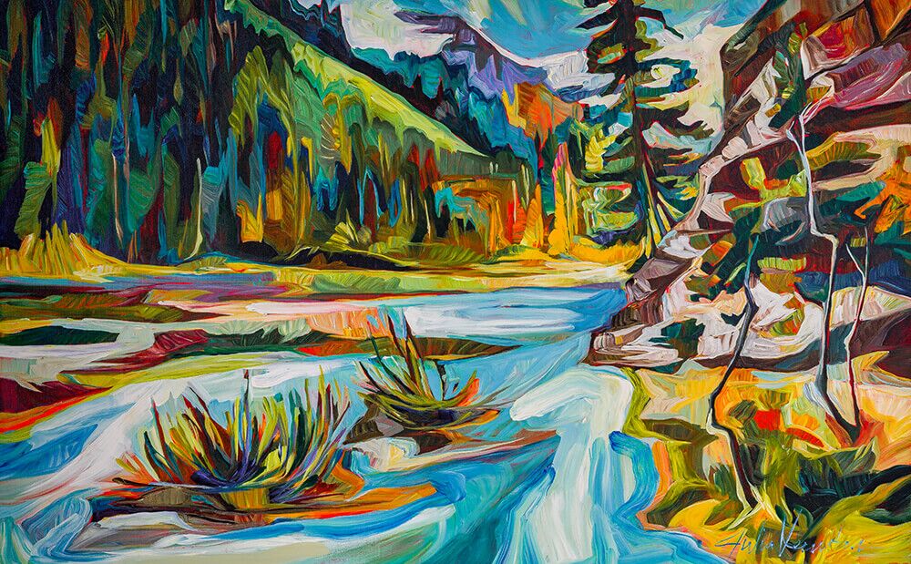 Julia Veenstra is a Canadian artist and entrepreneur known for her use of vibrant color and impressionistic style, incorporating diverse influences from years lived abroad. Her focus is on capturing the landscapes of her native Canada and creating art that evokes a sense of comfort and security.