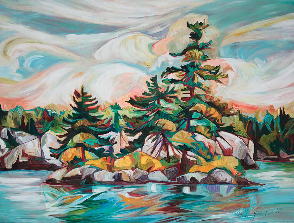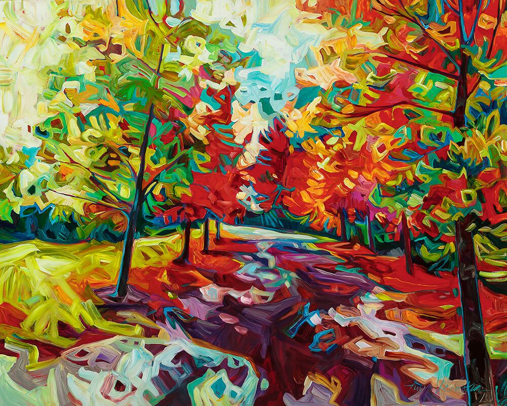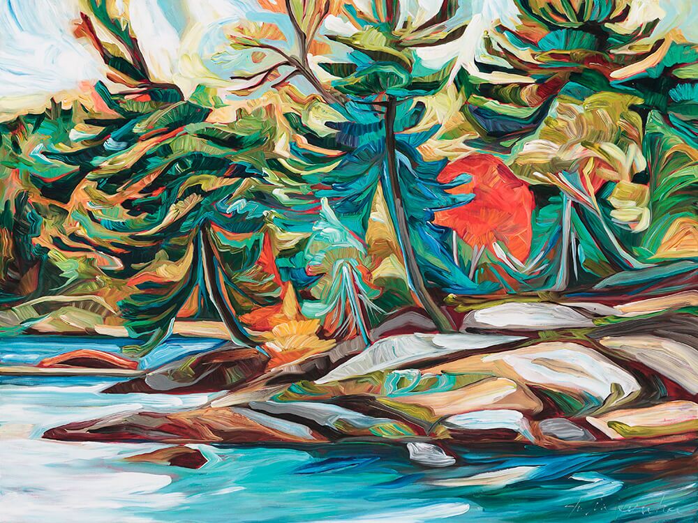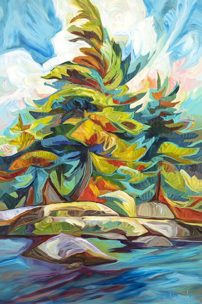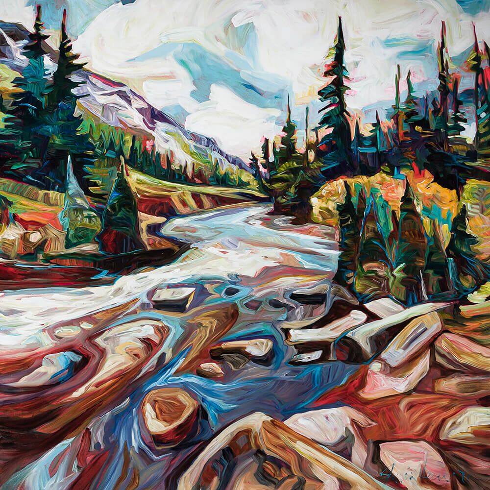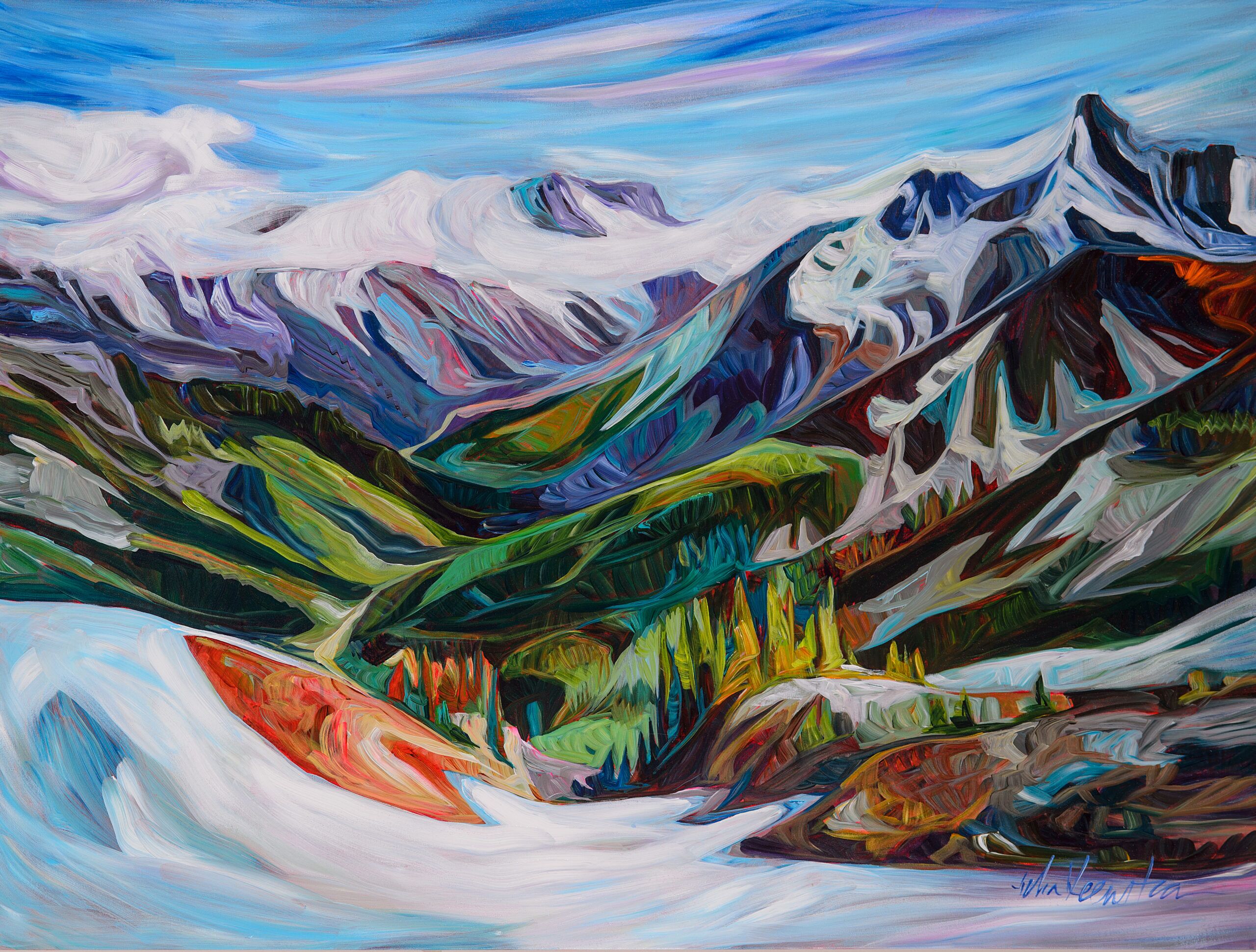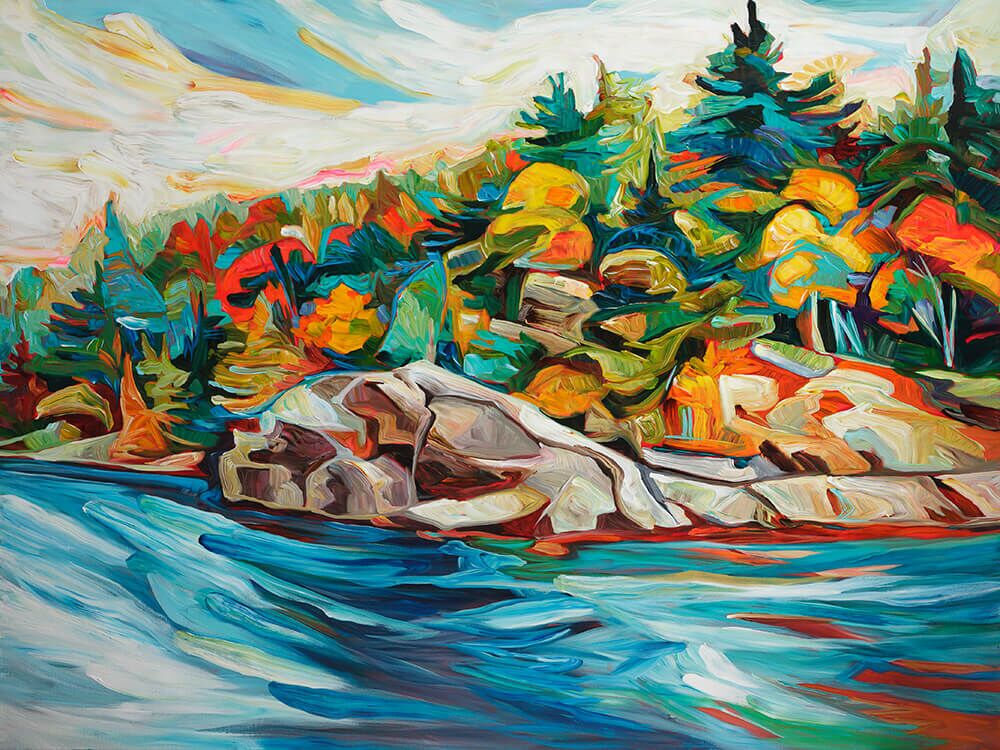Julia Veenstra is a Canadian artist and entrepreneur known for her use of vibrant color and impressionistic style, incorporating diverse influences from years lived abroad. Her focus is on capturing the landscapes of her native Canada and creating art that evokes a sense of comfort and security.