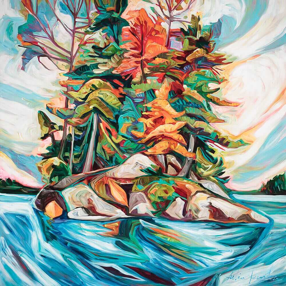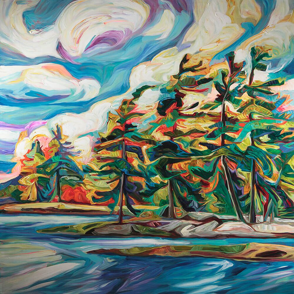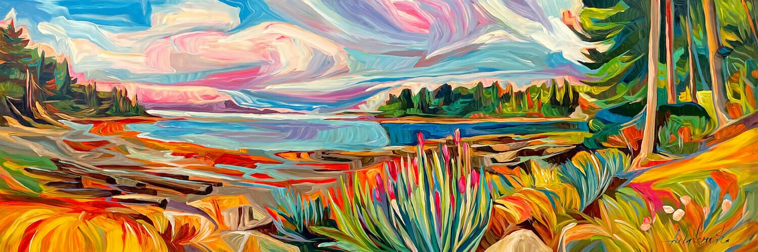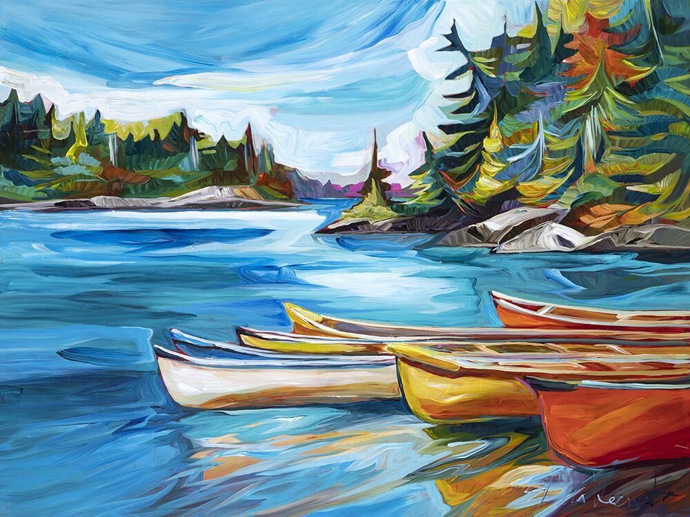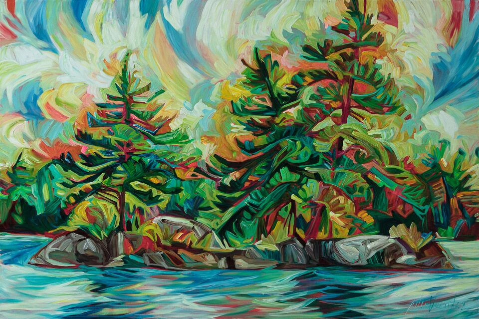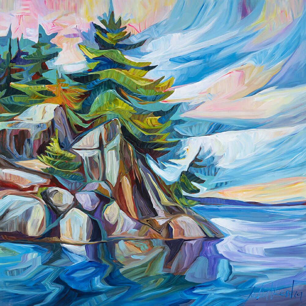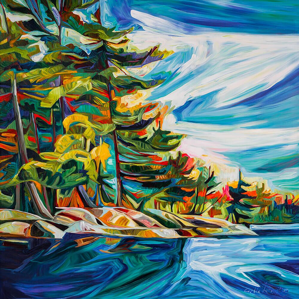 Julia Veenstra is a Canadian artist and entrepreneur known for her use of vibrant color and impressionistic style, incorporating diverse influences from years lived abroad. Her focus is on capturing the landscapes of her native Canada and creating art that evokes a sense of comfort and security.