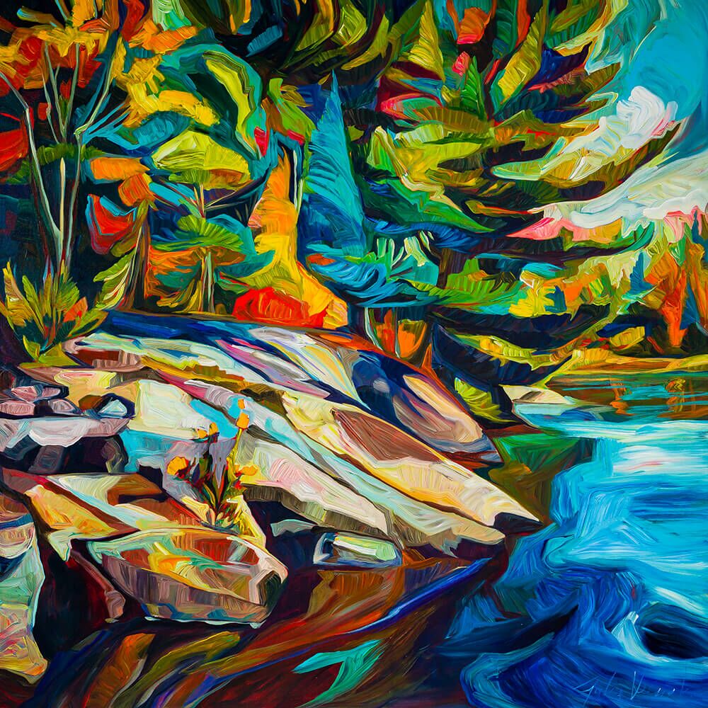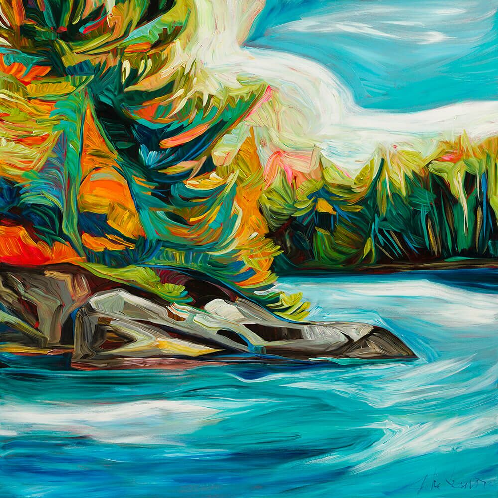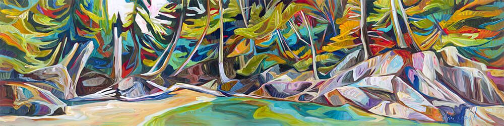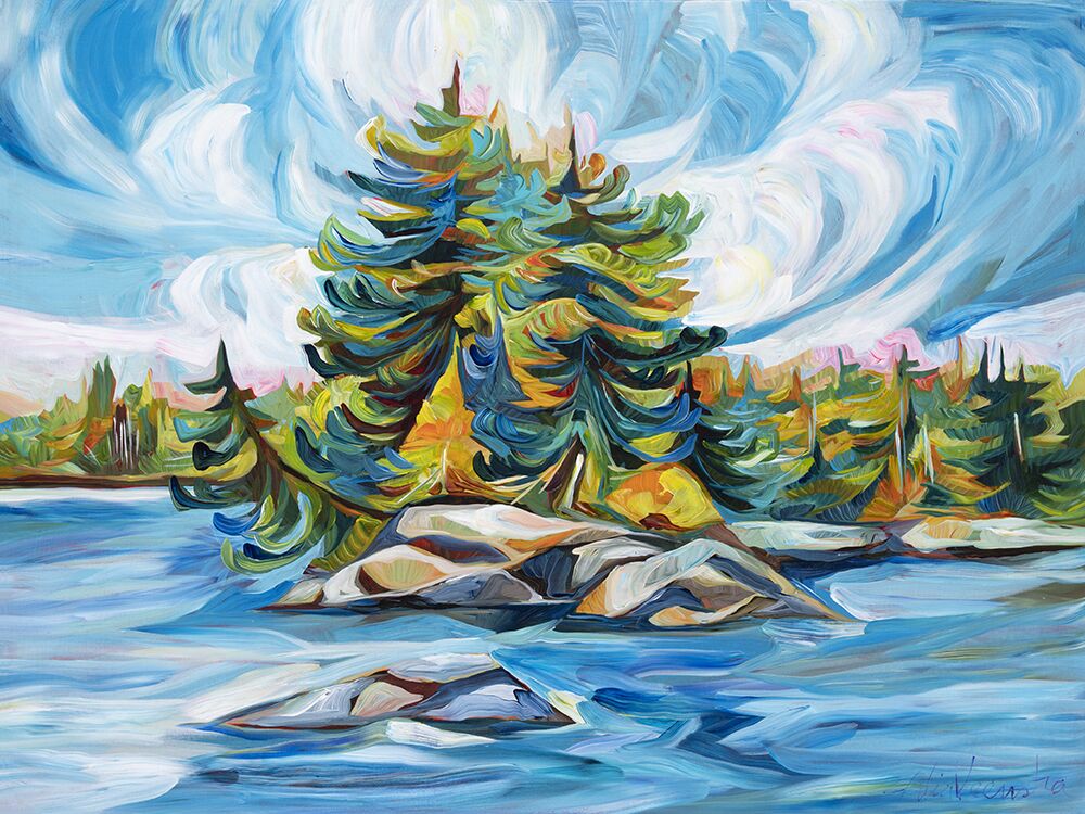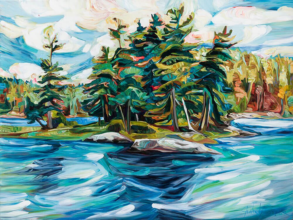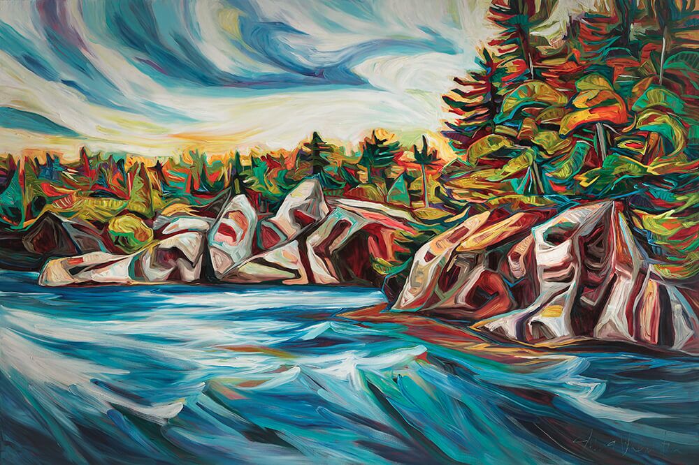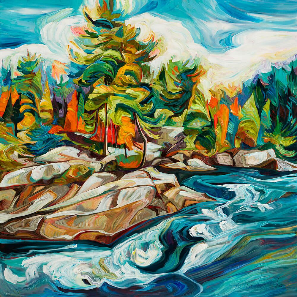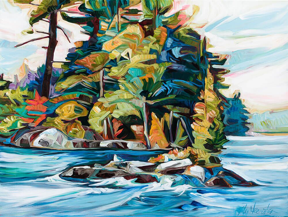 Julia Veenstra is a Canadian artist and entrepreneur known for her use of vibrant color and impressionistic style, incorporating diverse influences from years lived abroad. Her focus is on capturing the landscapes of her native Canada and creating art that evokes a sense of comfort and security.