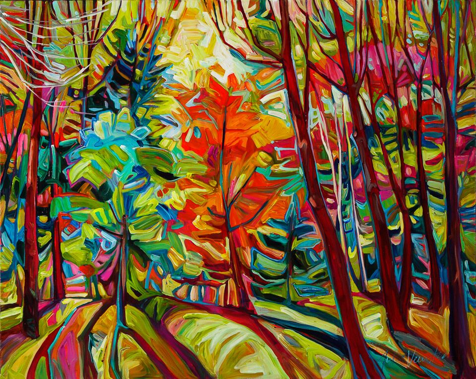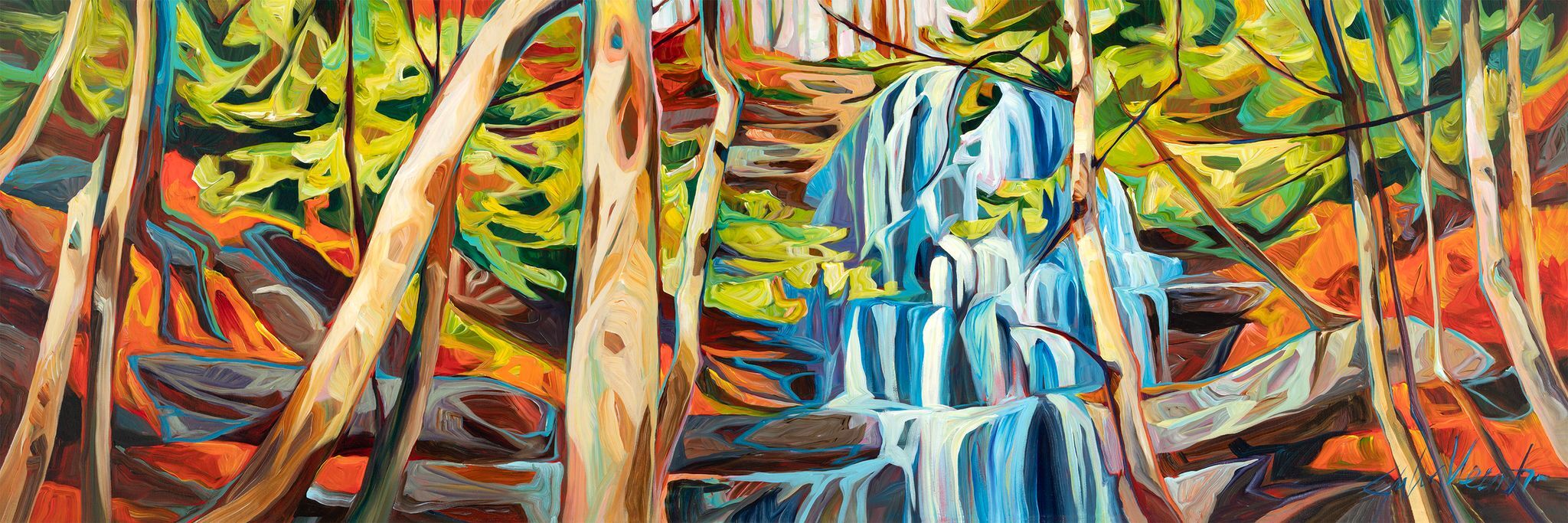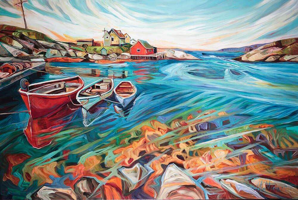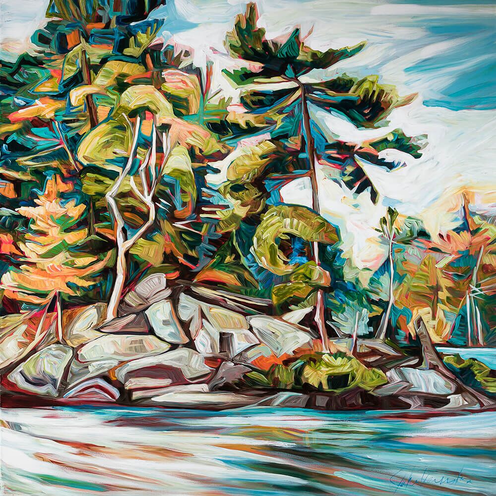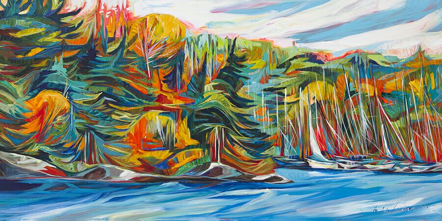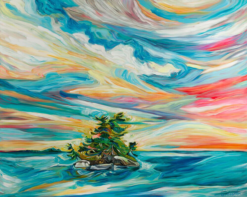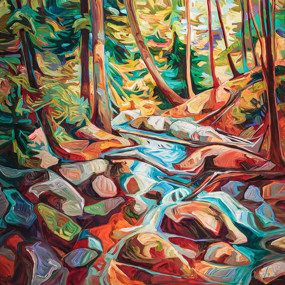 Julia Veenstra is a Canadian artist and entrepreneur known for her use of vibrant color and impressionistic style, incorporating diverse influences from years lived abroad. Her focus is on capturing the landscapes of her native Canada and creating art that evokes a sense of comfort and security.