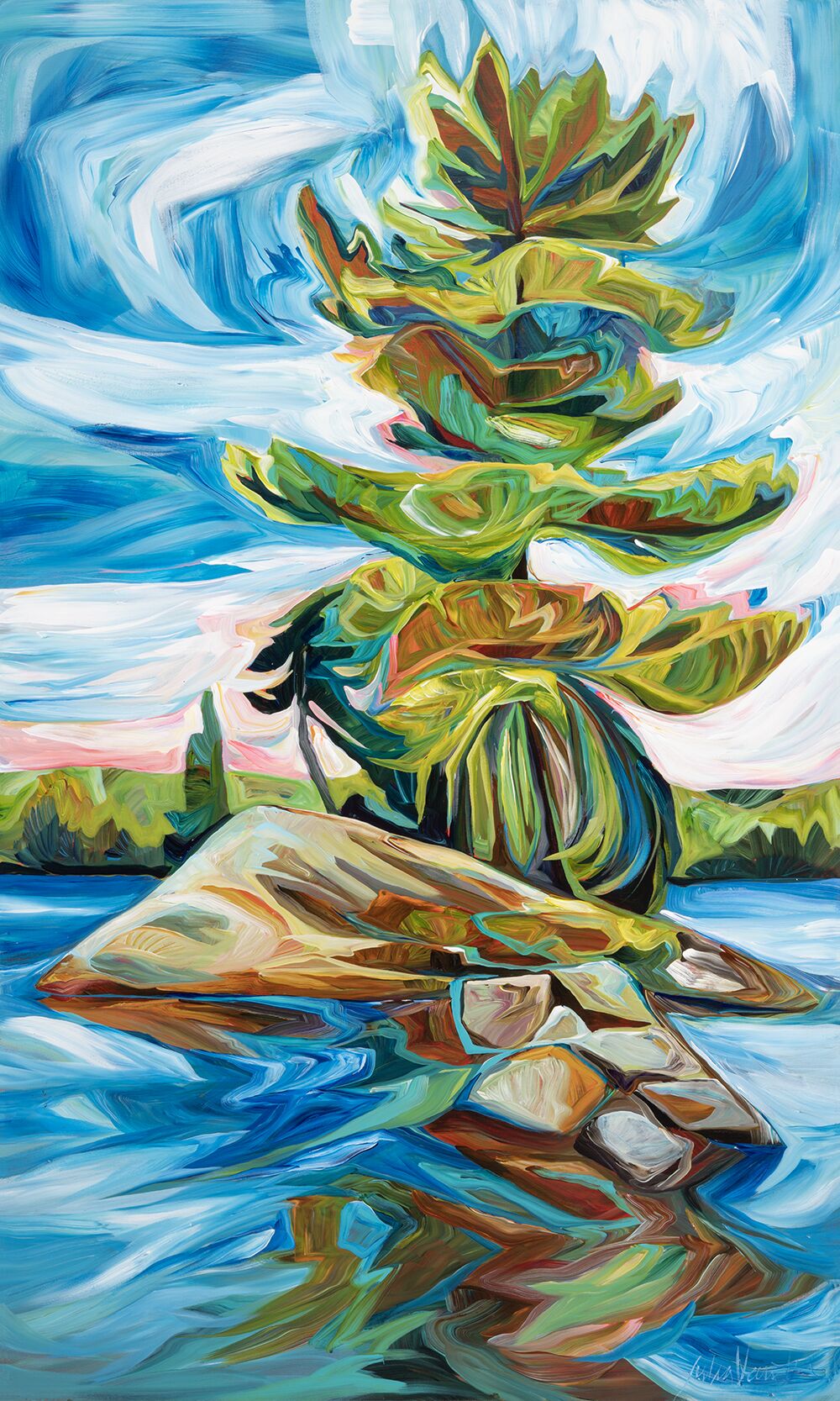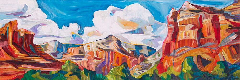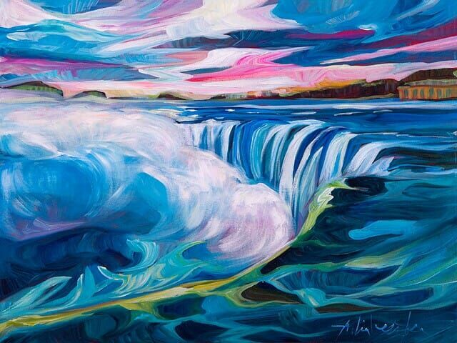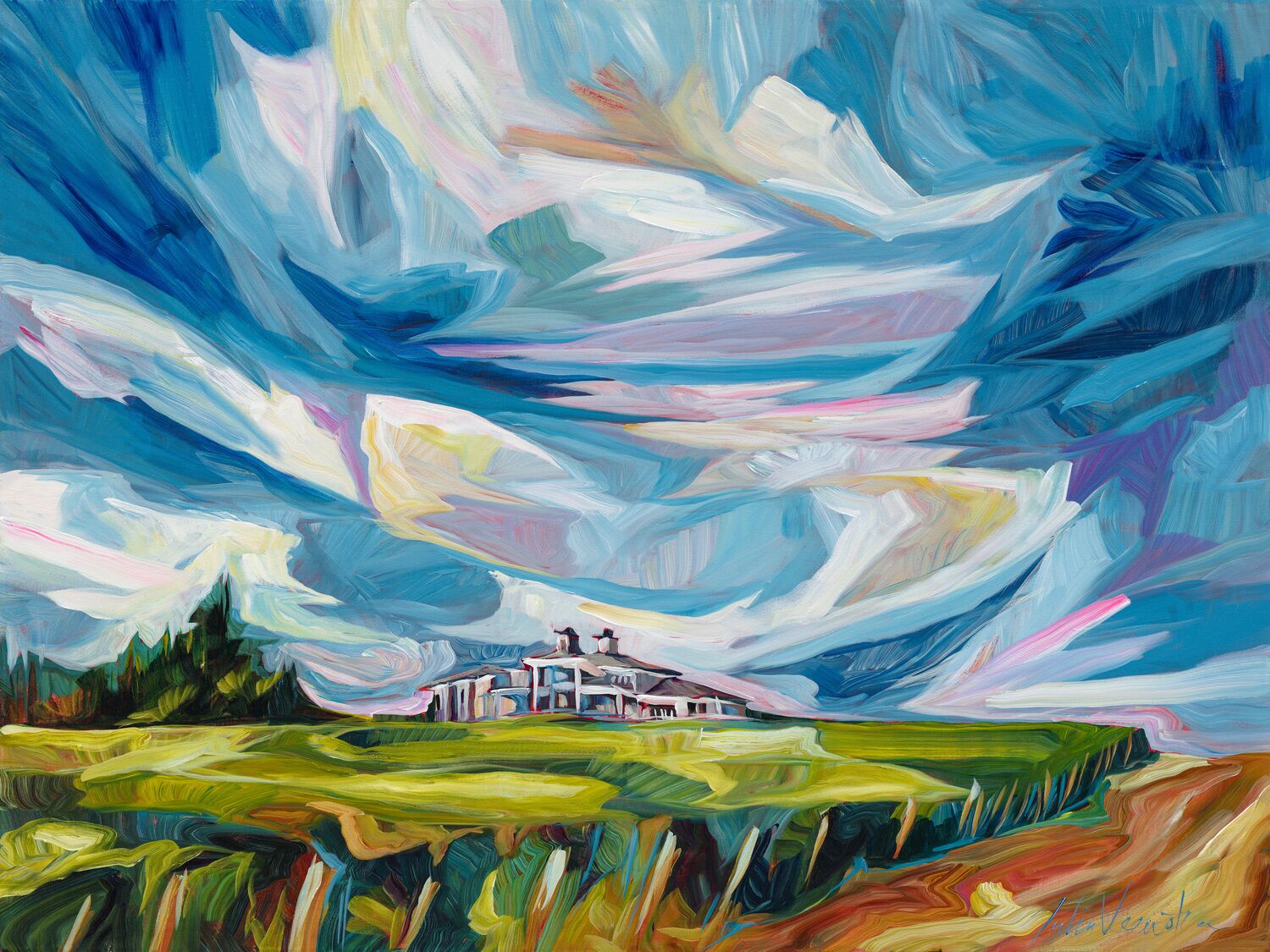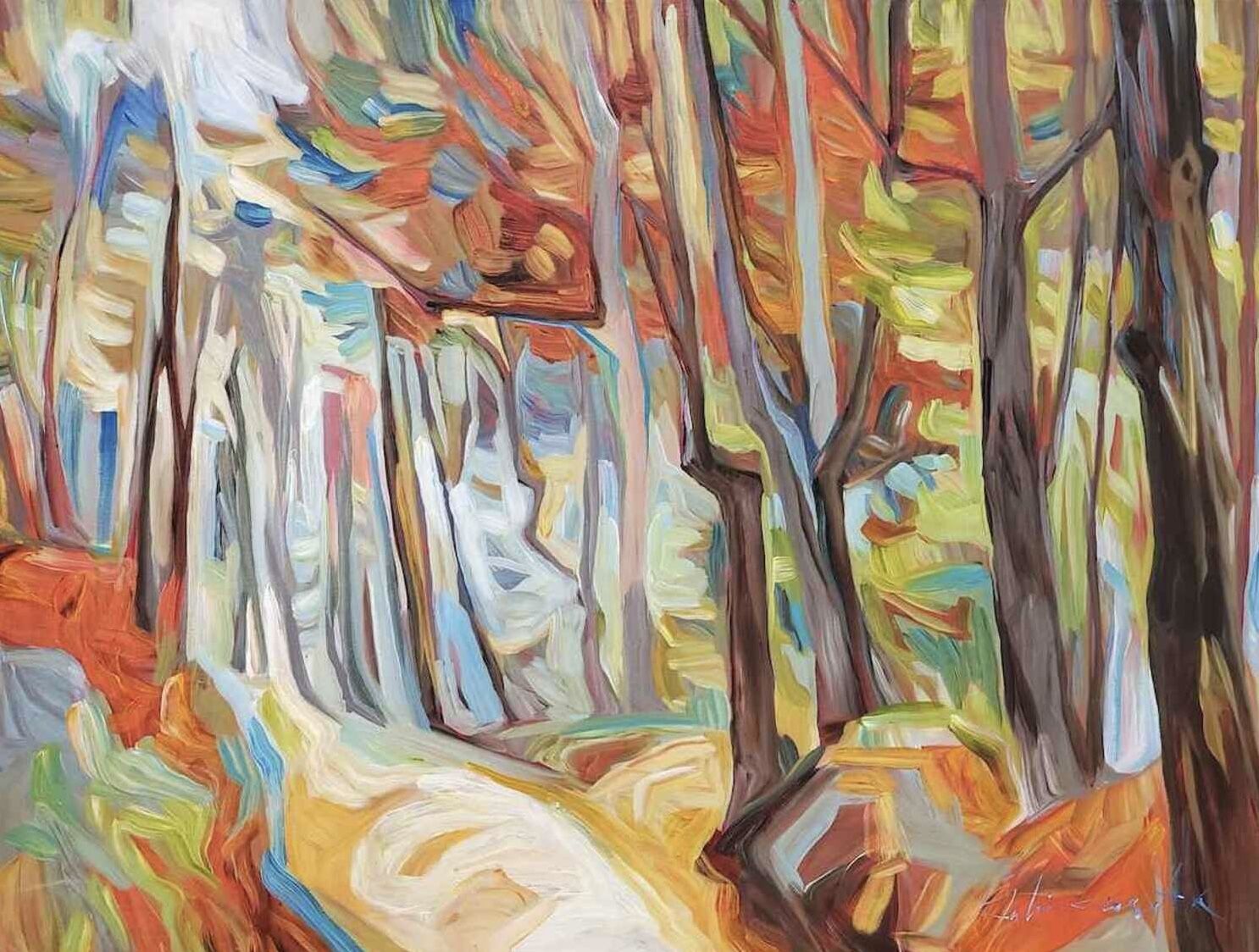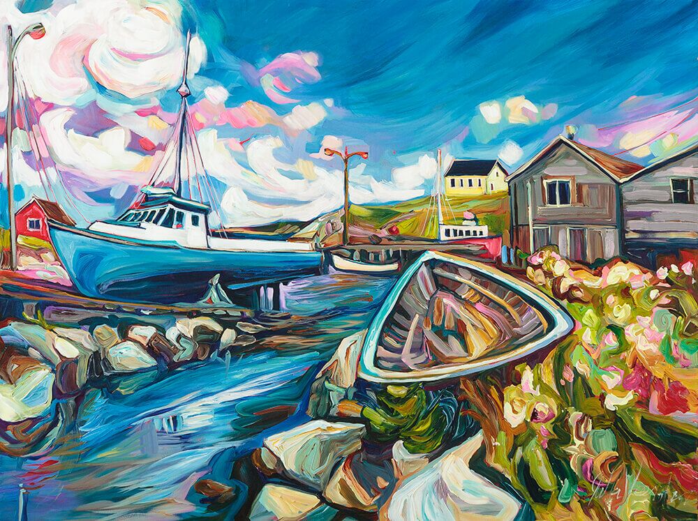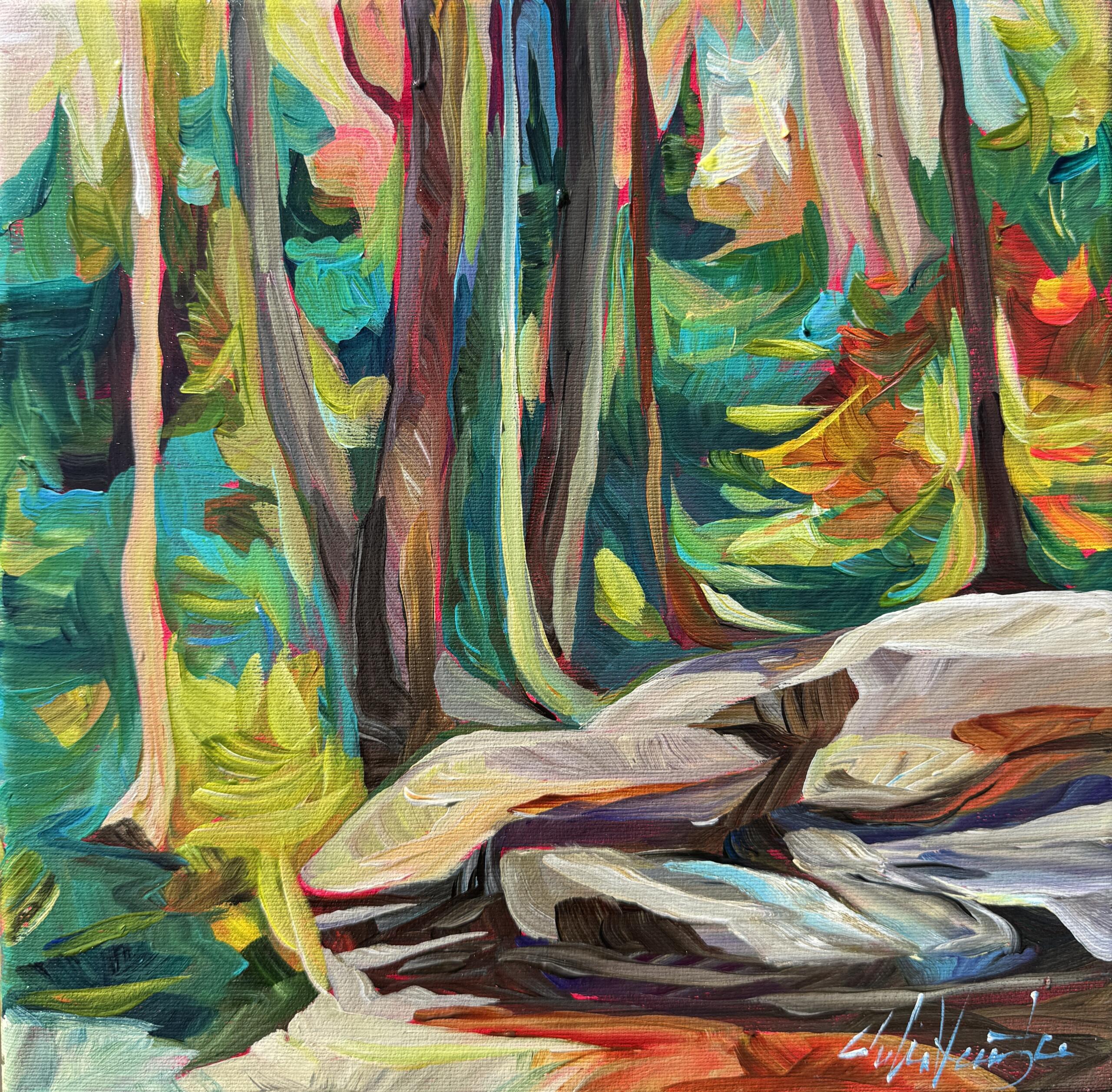 Julia Veenstra is a Canadian artist and entrepreneur known for her use of vibrant color and impressionistic style, incorporating diverse influences from years lived abroad. Her focus is on capturing the landscapes of her native Canada and creating art that evokes a sense of comfort and security.