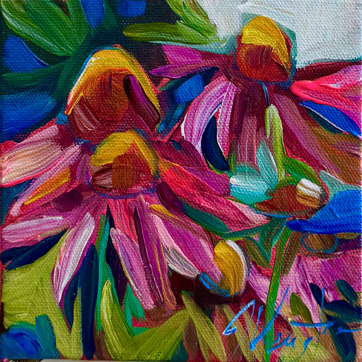 Echinacea – 6 by 6 Original Artwork With Natural Frame