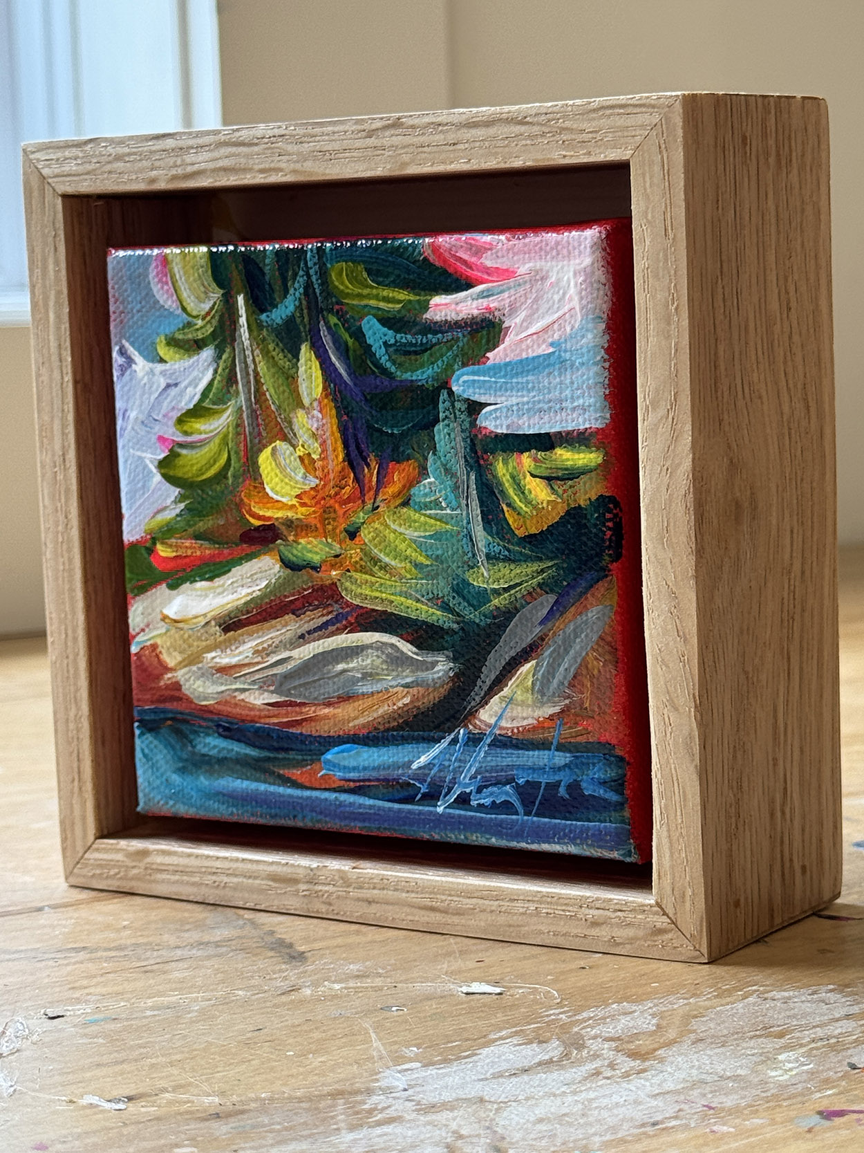 Windy Day – 4 by 4 Original Artwork With Natural Frame
